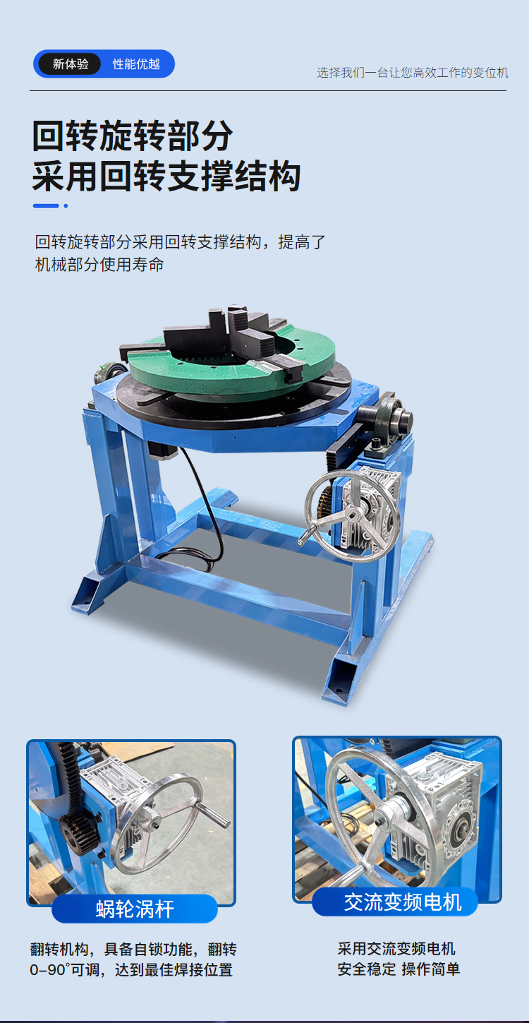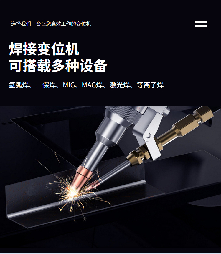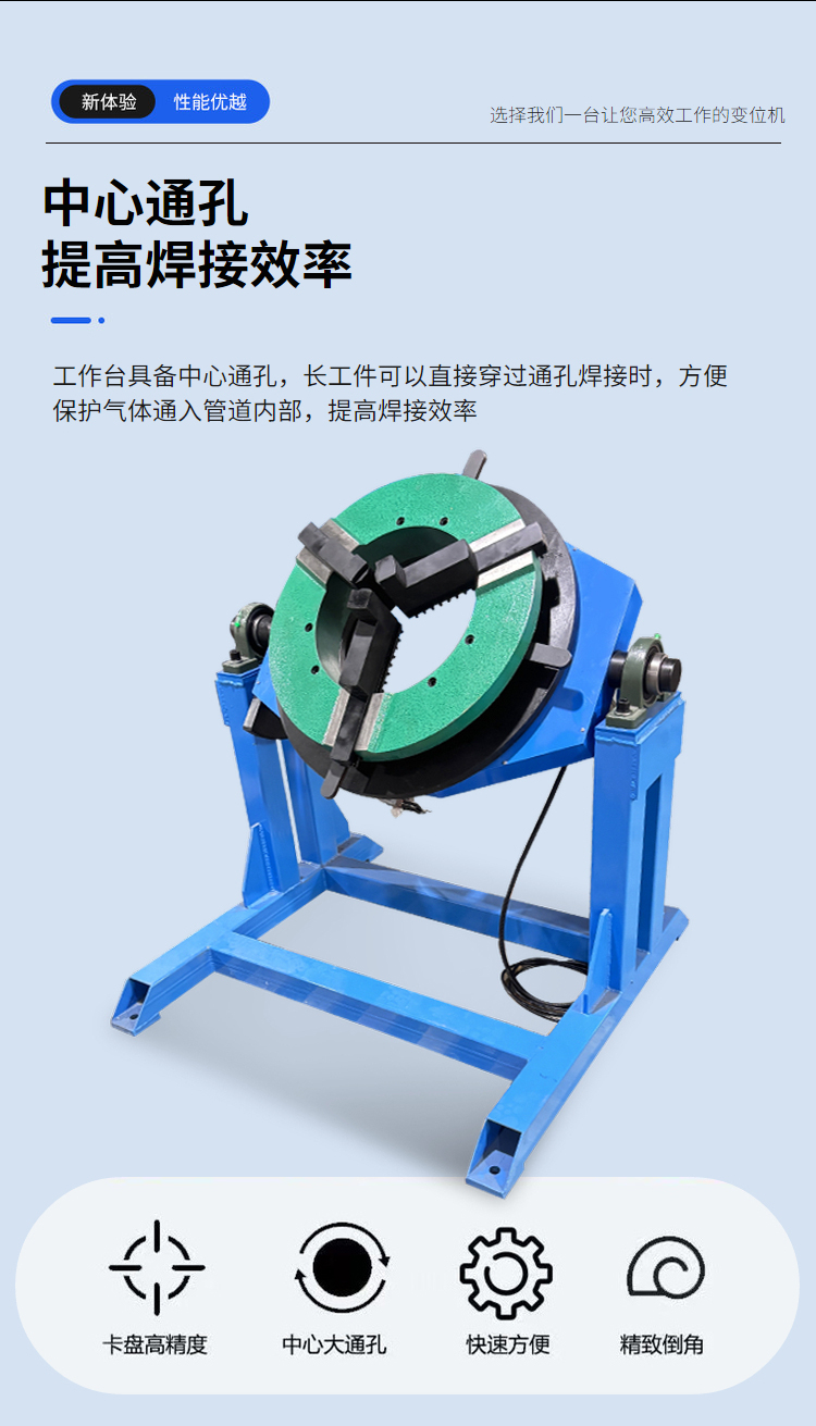 用于環(huán)形焊接、切割、拋光和裝配。 可配置焊接卡盤(pán)與調槍機構,用于固定焊炬位置,調節工件與焊槍的相對位置,可配氣動(dòng)頂尖 采用數控系統,控制更精準 精準控制焊接角度,0-750度之間任意順、逆時(shí)針設定