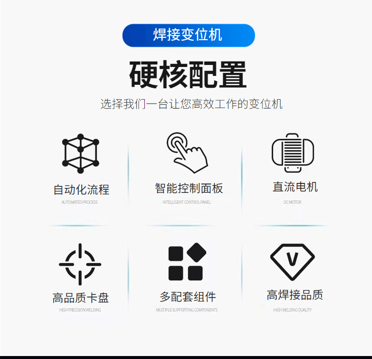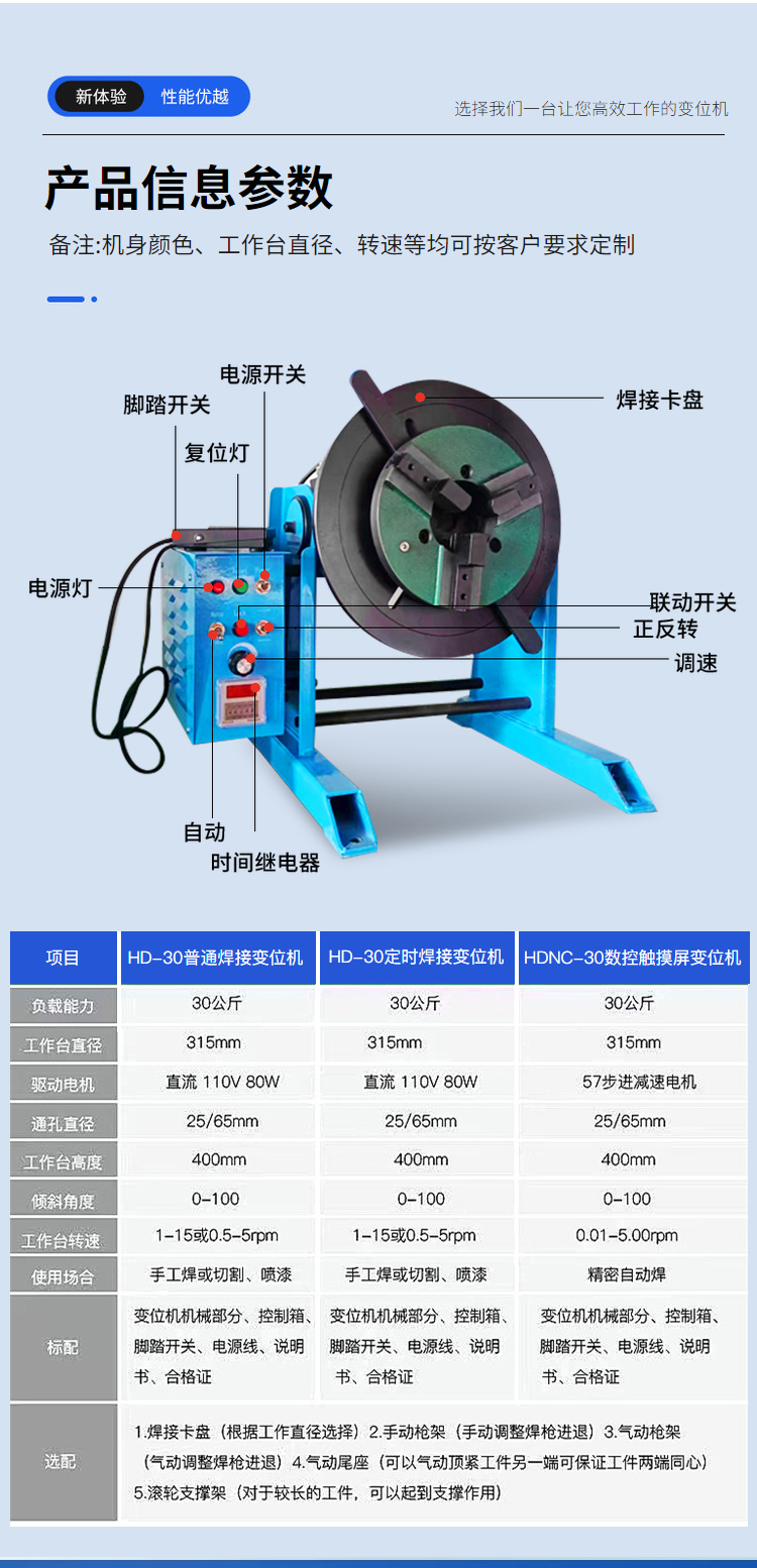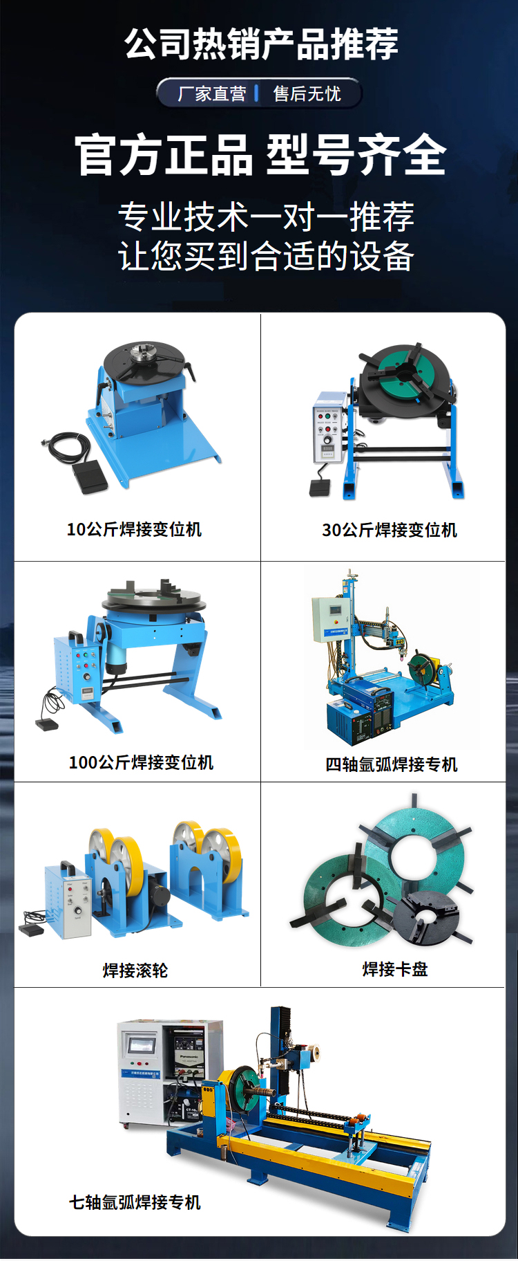 用于環(huán)形焊接、切割、拋光和裝配。 可配置焊接卡盤(pán)與調槍機構,用于固定焊炬位置,調節工件與焊槍的相對位置,可配氣動(dòng)頂尖 采用數控系統,控制更精準 精準控制焊接角度,0-750度之間任意順、逆時(shí)針設定