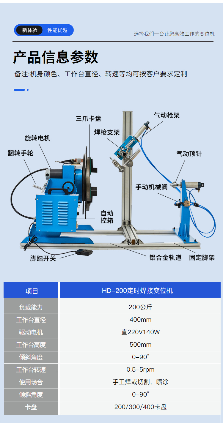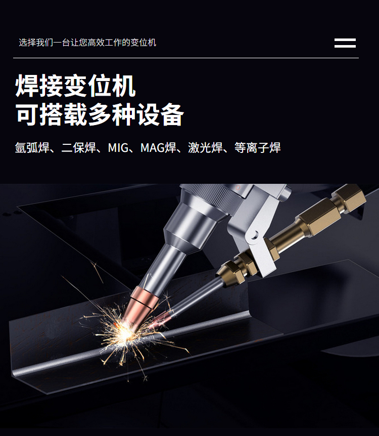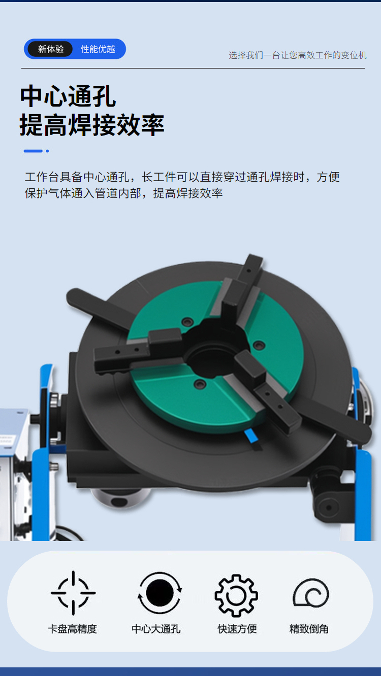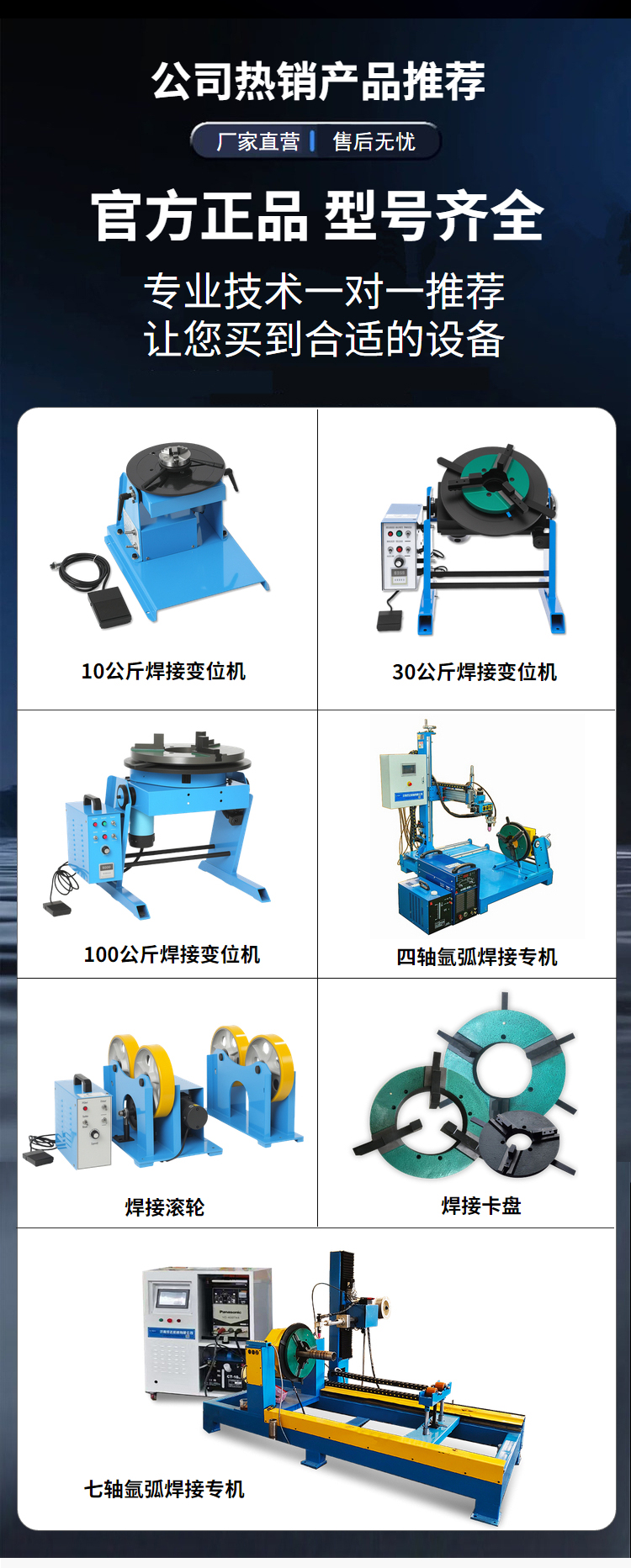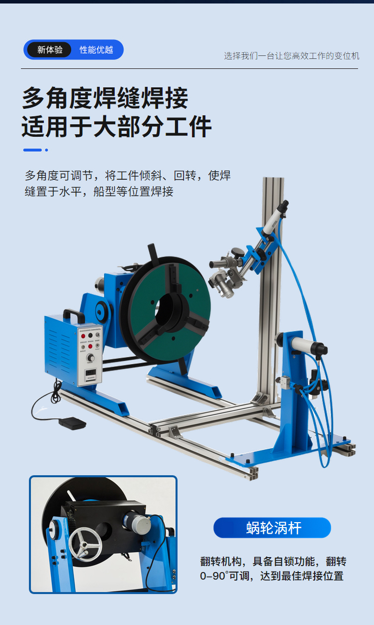 用于環(huán)形焊接、切割、拋光和裝配。 可配置焊接卡盤(pán)與調槍機構,用于固定焊炬位置,調節工件與焊槍的相對位置,可配氣動(dòng)頂尖 采用數控系統,控制更精準 精準控制焊接角度,0-750度之間任意順、逆時(shí)針設定