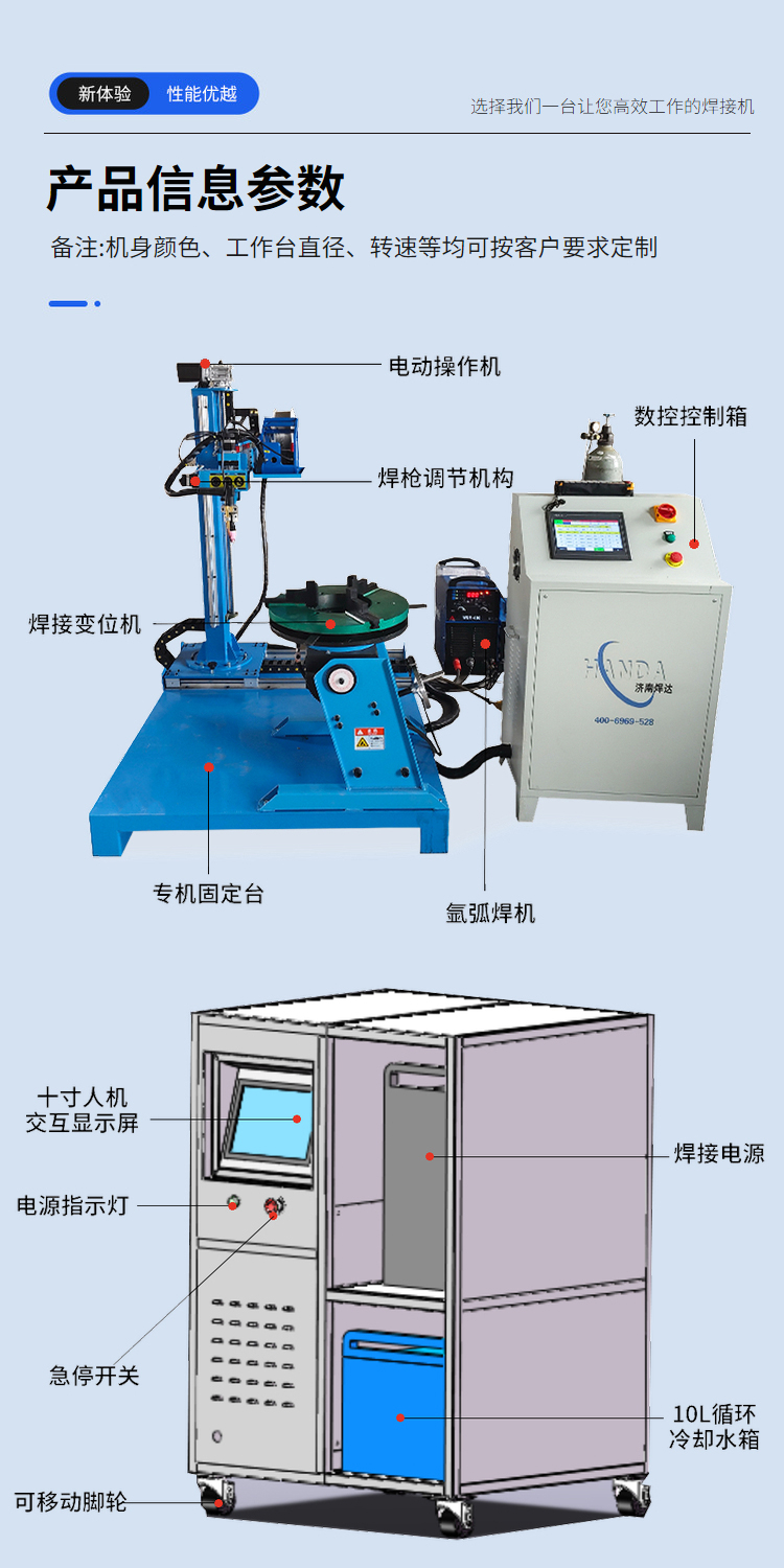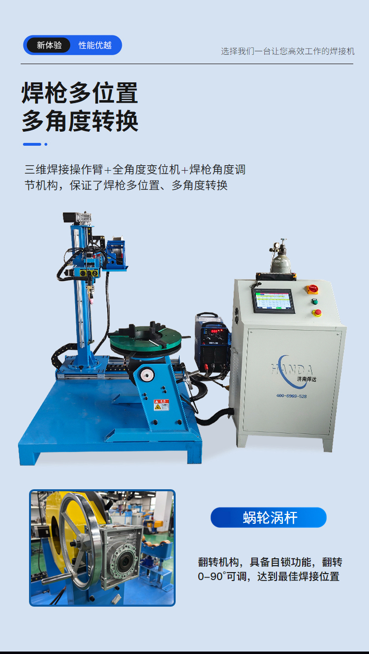 ●三維焊接操作臂+全角度變位機+焊槍角度調節機構,保證了焊槍多位置、多角度轉換