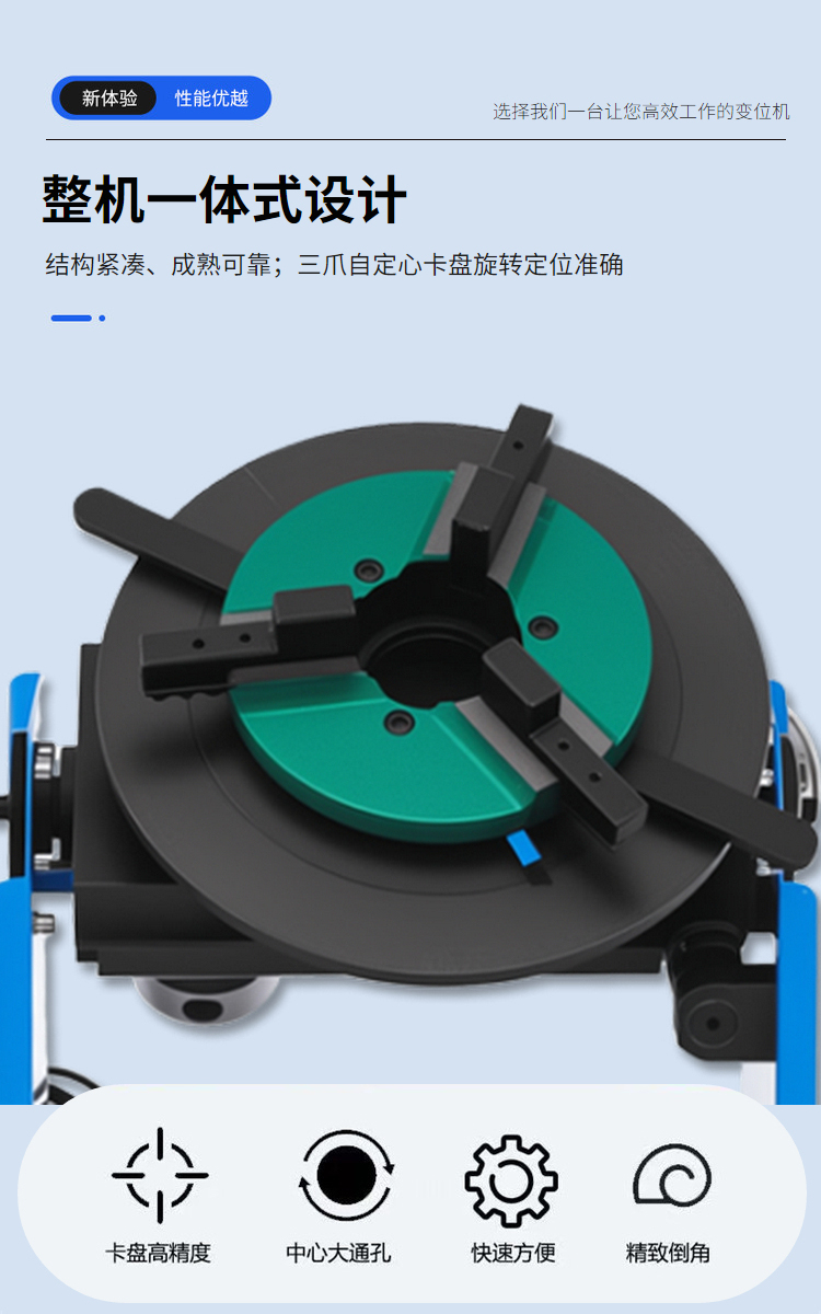●整機一體式設計,結構緊湊、成熟可靠;三爪自定心卡盤(pán)旋轉定位準確