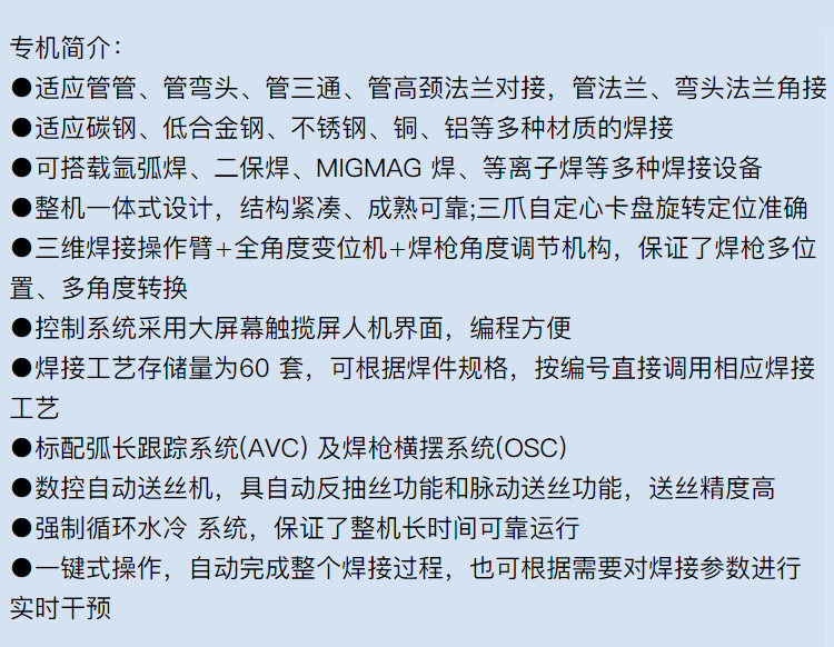 ●可搭載氬弧焊、二保焊、MIGMAG焊、 等離子焊等多種焊接設備